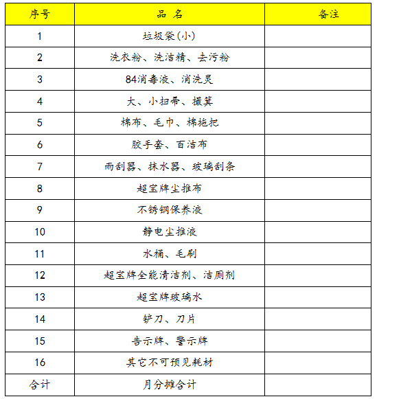 四)我方提供的保潔日常耗材清單(月均耗材:元)